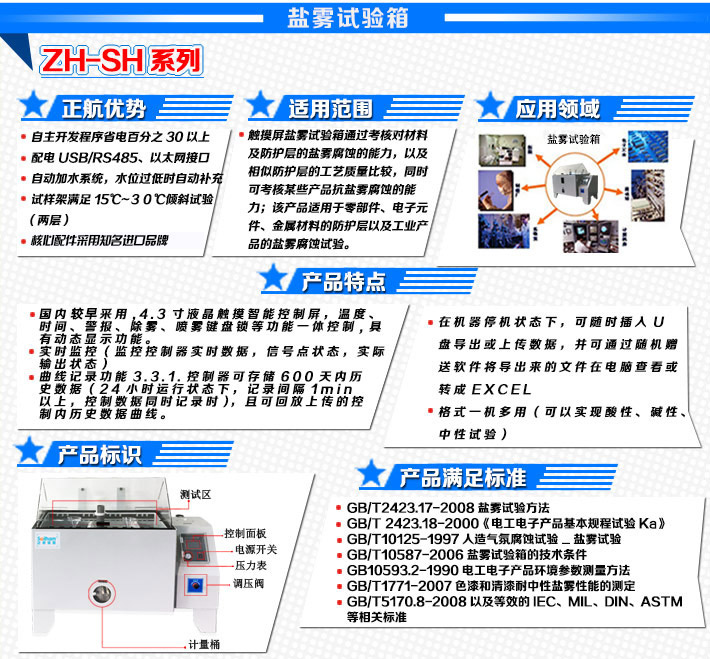 正航鹽霧試驗箱是采用鹽霧腐蝕的方式來檢測被測樣品的分別耐腐蝕的可靠性,鹽霧是指大氣中由含鹽微小液滴所構成的彌散系統,是人工環境三防系列中的一種,很多企業產品需模擬海洋周邊氣候對產品造成的破壞性,所以鹽霧試驗箱應運而行。鹽霧試驗分為中性鹽霧和酸性